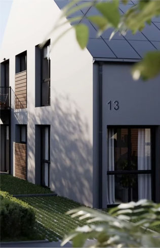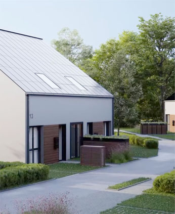 Im südlichen Berlin in der Stadt Zossen entstehen 24 Doppelhaushälften. Der Entwurf basiert auf den Richtlinien von QNG und ist somit förderfähig. Die Anlage fügt sich in das bestehende Dorf ein und plant dieses weiter. Die Doppelhaushälften umfassen jeweils ausgeklügelte Doppelwohnungen, die zusammengeschaltet werden können. Somit kann der Grundriss mit der Familie wachsen und sich den Größen anpassen.