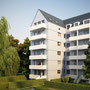 Der fünfgeschossige Bestandsbau wird um einen neuen Fügel in gleicher Höhe erweitert. Das neue Ensemble wird auf den Stand der Technik gebracht. Die Aussenwirkung ist zurückhaltend und materiell solide. Der Riffelputz auf der Fassade gibt dem Bauwerk eine gleichmäßig strukturierte Ansicht. Die Balkone stehen als eigene Bauteile vor der Fassade. Alle Details werden schlicht und zurückhaltend gestaltet, so daß ein Gesamteindruck entsehen kann.