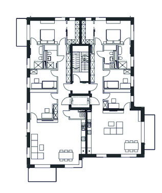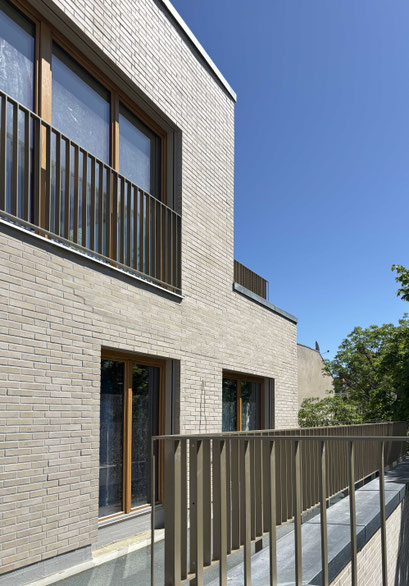 In einem nicht einsehbaren Hinterhof in der Reichenberger Straße wird ein Wohnneubau erstellt. Das Bauwerk steht in einem heterogenen Umfeld, das stark durch die Bestandsarchitektur geprägt ist. Alte Sichtmauerwerke und Pfeiffenklinker dominieren die Oberflächen. Das neue Bauwerk reagiert auf den Ort mit einer eigenständigen Interpretation des Kontextes. Durch eine Ziegeloberfläche und Stahldetails wird eine Atmosphäre authentischer Materialien erzeugt. Die Architektur ist selbstbewußt und unterstreicht die freistehende Position des Gebäudes. Das Bauwerk ist mit einer Tiefgarage unterkellert.