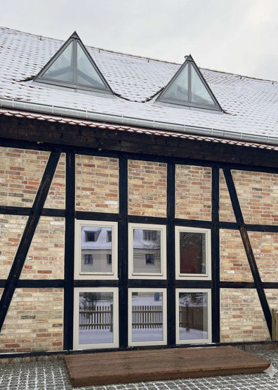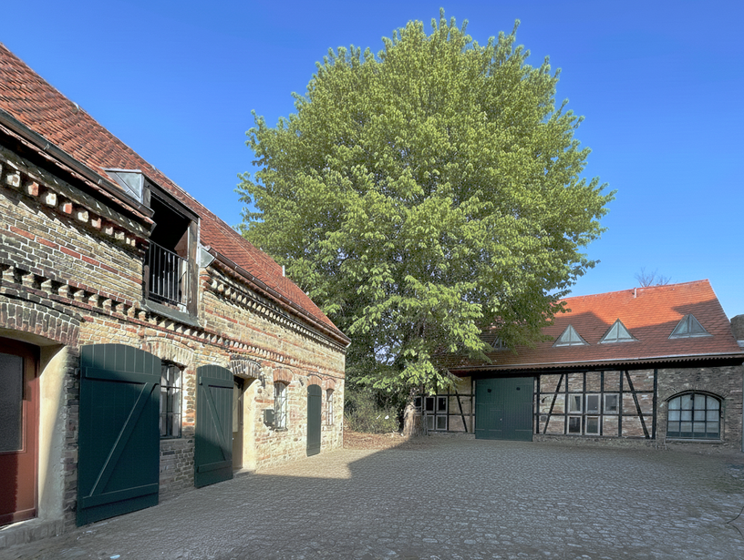 Bei den heutigen Wohnbauten handelt es sich um Teile von ehemaligen Bauernhöfen. Von dem ursprünglichen Bauernhof sind noch der ehemalige Stall und die ehemalige Scheune erhalten geblieben. Der ursprüngliche Bauernhof wurde abgerissen. An seiner Stelle wurde um 1880 ein klassizistisches, dreigeschossiges Wohnhaus erstellt. Auf der gegenüberliegende Seite wurde anstatt eines alten Stallgebäudes ein zweigeschossiger Wohnbau um 1984 erstellt. Das dahinterliegende Grundstück dient ebenso dem Wohnen und beherbergt zwei großflächige Bauten aus den 1980er Jahren, deren Sanierung ebenso von Peters Kaiser Wormuth Architekten geplant wurde.